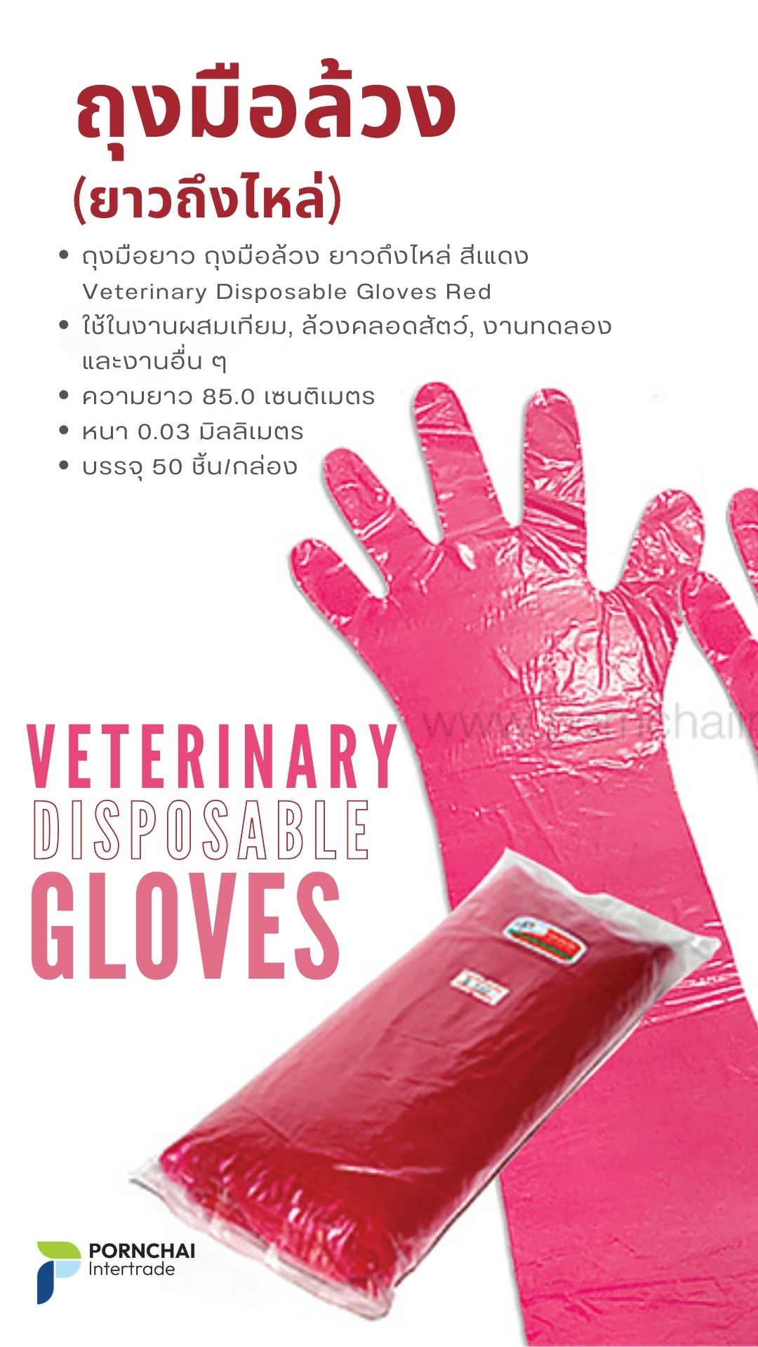 ถุงมือยาว ถุงมือล้วง ยาวถึงไหล่ สีเแดง Veterinary Disposable Gloves Redใช้ในงานผสมเทียม, ล้วงคลอดสัตว์, งานทดลอง และงานอื่น ๆ